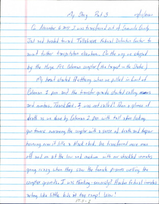 My Story Part 3 07/15/2020 On November 6 2018 I was transferred out of Seminole County Jail and headed toward Tallahasee Federal Detention Center to await further transportation elsewhere. On the way we stopped by...