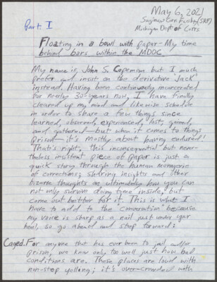 Floating in a bowl with paper - my time behind bars within the MDOC