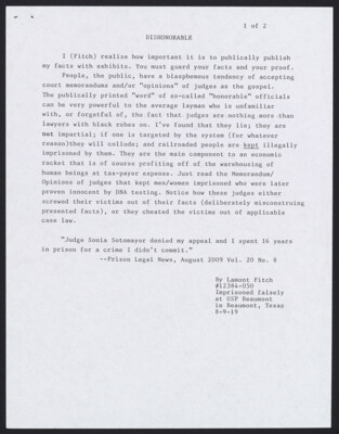 Dishonorable I (Fitch) realize how important it is to publicly publish my facts with exhibits. You must guard your facts and your proof. People, the public, have a blasphemous tendency of accepting court memorandums and...