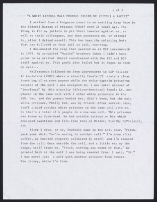 "A White Liberal Male Federal Called Me (Fitch) A Racist" I arrived from a kangaroo court to an awaiting trap here in the federal Bureau of Prisons (FBOP) over 21 years ago. The thing is...