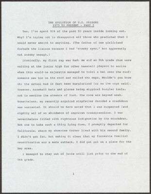 THE EVOLUTION OF U.S. PRISONS 1973 TO PRESENT - PART I Yes. I've spent 90% of the past 50 years inside looking out. Why? I'm trying not to disappoint all those who predicted that I...