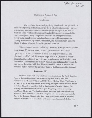 The Invisible Wounds of War By Shon Pernice War is a battle for survival: physically , emotionally , and spiritually. It has a way of pushing and pulling your psyche in all different directions. 1...