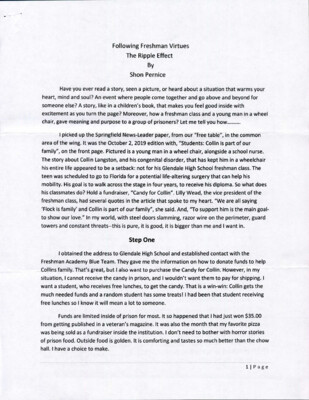 Following Freshman Virtues The Ripple Effect By Shon Pernice Have you ever read a story, seen a picture, or heard about a situation that warms your heart, mind and soul? An event where people come...