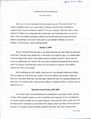 Word Count 1100 Conditioned Emotional Response By Shon Pernice Have you ever done something foolish and asked yourself, "Why did I do that?' It is usually something small or just a minor lapse in character....
