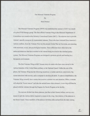The Missouri Veterans Program By Shon Pernice The Missouri Veterans Program (MVP) was established the summer of 2017 as a result of a pilot PTSD therapy group. The first official Veterans Wing in the Missouri...