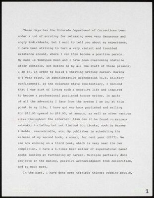 These days has the Colorado Department of Corrections been under a lot of scrutiny for releasing some very dangerous and angry individuals, but I want to tell you about my experience. I have been striving...