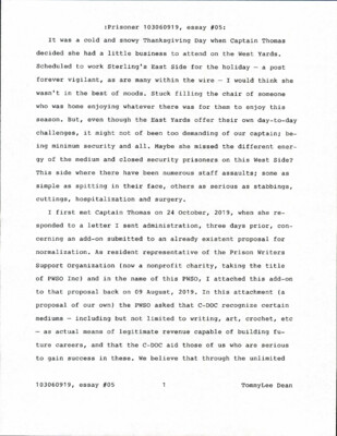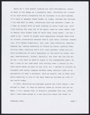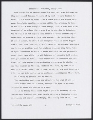 Prisoner 103060919, essay #03: Upon accepting my second essay for posting, APWA informed me they now looked forward to more of my work. I have decided to fulfill this honor by submitting a piece every...