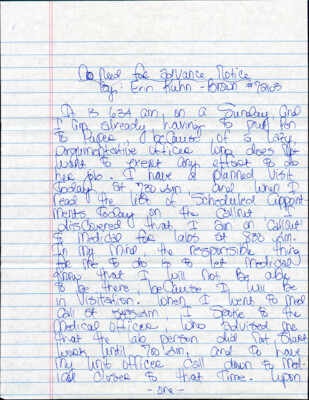 No Need for Advance Notice By: Erin Kuhn-Brown It is 634 am on a Sunday, and I am already having to put pen to paper, because of a lazy, argumentative officer who does not want...