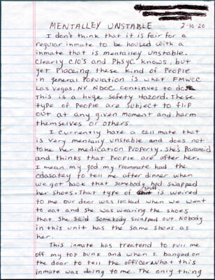 Mentally Unstable 2-10-20 I don't think that it is fair for a regular inmate to be housed with a inmate that is mentally unstable. Clearly C/Os and Psych knows, but yet placeing these kind of...