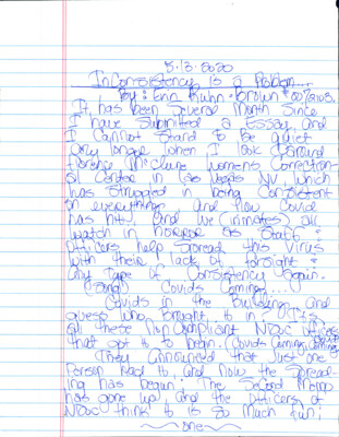 5.13.2020 Inconsistency is a Problem By: Erin Kuhn-Brown [ID] It has been several moths since I have submitted an essay, and I cannot stand to be quiet any longer when I look around Florence McClure...