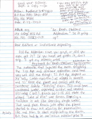 Send your science Dept. a copy "You may publish this too. This is for your geo-physicist and astro-physicist nay-sayers and science department. Make sure they read it. Invite them to contact me. "For real." I'm...