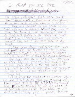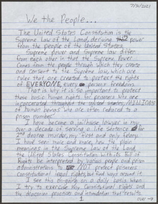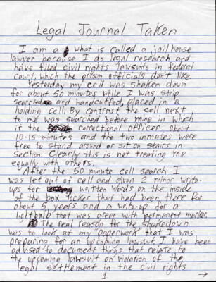 Legal Journal Taken I am what is called a jailhouse lawyer because I do legal research and have filed civil rights lawsuits in federal court, which the prison officials don't like. Yesterday my cell was...