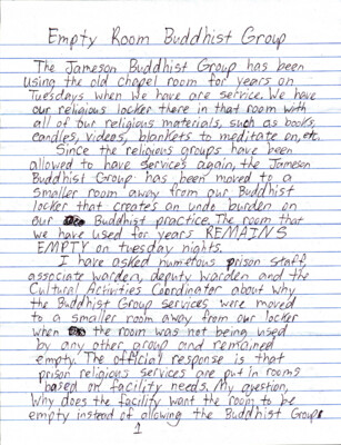 Empty Room Buddhist Group The Jameson Buddhist Group has been using the old chapel room for years on Tuesdays when we have are service. We have our religious locker there in that room with all...