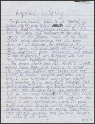 2/7/2021 Reprisal Labeling In prison, nobody likes to be labeled by prison staff and others as a “rat,” “snitch”, “Buddha Rat,” “Lawyer rat,” etc. But this has been done and continues to be done openly...
