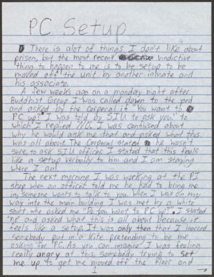 PC Setup There is alot of things I don’t like about prison, but the most recent vindictive thing to happen to me is to be setup to be moved off the unit by another inmate...