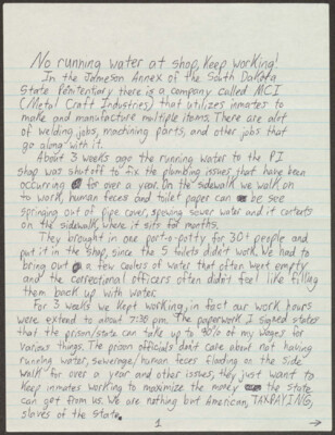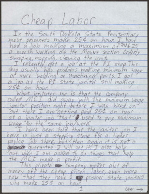 Cheap Labor In the South Dakota State Penitentiary most prisoners make 25¢ an hour. I have had a job making a maximum of $46.25 a month working as the Mauve section orderly sweeping, mopping, cleaning...