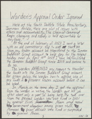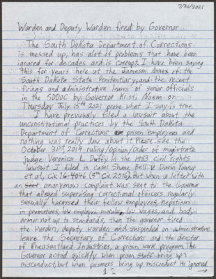 7/30/2021 Warden and Deputy Warden fired by Governor The South Dakota Department of Corrections is messed up, has alot of problems that have been ignored for decades and is corrupt. I have been saying this...