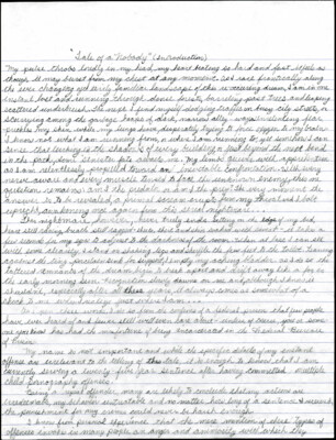 "Tale of a Nobody" (Introduction) My pulse throbs loudly in my head, my heart beating so hard and fast it feels as though it may burst from my chest at any moment. As I race...