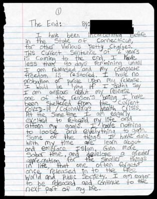 The End: I have been incarcerated before in the state of Connecticut, for other various petty charges. This current sentence of 2 years is coming to the end. I have less than 90 days remaining...