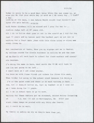 The Covid-19 Pandemic - A View From Prison While the rest of the world inches ever so slowly towards some sense of normalcy, life behind the wall remains at a virtual stand still. Due to...