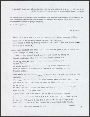 10/03 2020 [two lines of Arabic text] The example of the good company and the bad company is like the carrier of Musk and the blower of bellows, the Musk carrier either gives you some,...