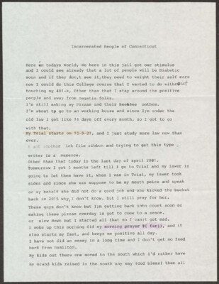 Incarcerated People of Connecticut Here in todays World, We here in this jail got our stimulus and I could see already that a lot of people will be Diabetic soon and if they don,t see...