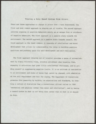 Tracing a Duty Based System From Prison There are three approaches to change in prison that I have discovered. The first and most common approach is staying out of trouble. The second approach involves engaging...