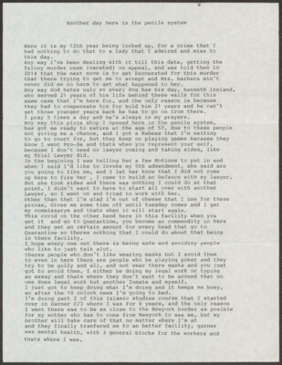 Another day here in the penile system Here it is my 12th year being locked up, for a crime that I had nothing to do that to a lady that I admired and miss to...