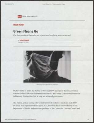 PRISON JOURNALISM PROJECT PRISON REPORT Green Means Go For three weeks in November, we experienced a relative return to normal. by THOMAS DONAHUE February 22, 2022 Photo by Tai’s Captures on Unsplash On November 1,...