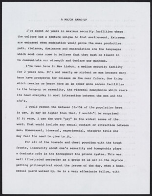A MAJOR HANG-UP Ilve spent 22 years in maximum security facilities where the culture has a texture unique to that environment. Extremes are embraced when moderation would prove the more productive path. Violence, dominance and...