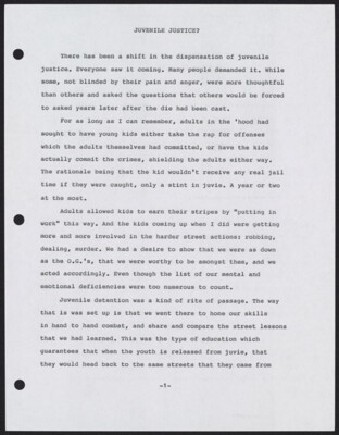 Juvenile Justice? There has been a shift in the dispensation of juvenile justice. Everyone saw it coming. Many people demanded it. While some, not blinded by their pain and anger, were more thoughtful than others...
