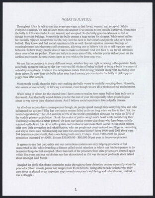 WHAT IS IUSTICE Throughout life it is safe to say that everyone wants to feel loved, wanted, and accepted .While everyone is unique, we can all learn from one another if we choose to see...