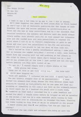 WCI Tom Kropp [ID] PO Box 351 Waupun, WI 53963 True Story Bail Jumping I knew it was a bad idea to go get K, but I did it anyway. We'd been together two years...