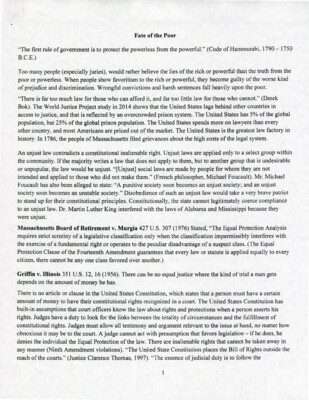 Fate of the Poor "The first rule of government is to protect the powerless from the powerful."(Code of Hammurabi, 1790-1750 B.C.E.) Too many people (especially juries), would rather believe the lies of the rich or...