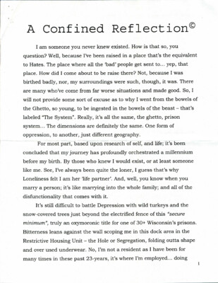 A Confined Reflection I am someone you never knew existed. How is that so, you question? Well, because I've been raised in a place that's the equivalent to Hates. The place where all the 'bad'...