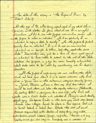 1 The title of this essay is 'The Purpose of Prison' by Robert Sharp. At the age of 40, after having spent most of my adult life in prisons, with another 20 years ahead of...