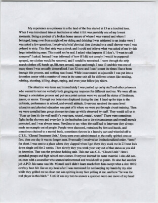 My experience as a prisoner in the land of the free started at 13 as a troubled teen. When I was introduced into an institution at what it felt was probably one of my lowest...