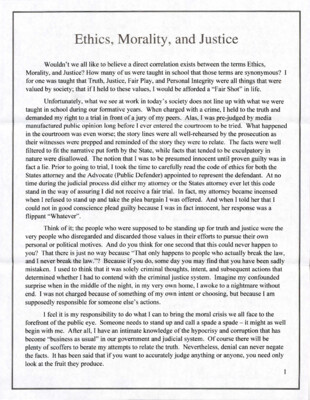Ethics, Morality, and Justice Wouldn't we all like to believe a direct correlation exists between the terms Ethics, Morality, and Justice? How many of us were taught in school that those terms are synonymous? I...