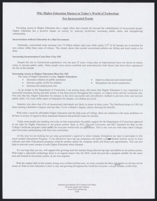 Whv Higher Education Matters in Todav’s World of Technology For Incarcerated People Providing access to Higher Education has a ripple effect that extends far beyond the rehabilitation of incarcerated people. Higher Education has a positive...