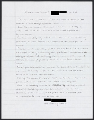 " Dehumanization Session 3" 10-8-18 The objective and definition of dehumanization in prison is the breaking of minds through oppressive tactics. Once the mind becomes dehumanized and debased conformity to living a life lower than...