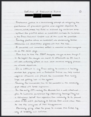 Definition of Restorative Justice Restorative justice is a revolutionary attempt at mitigating the proliferation of procedural justice whos misguided objective to convict, isolate, release has failed as evidenced by recidivism rates. Without the positive return...