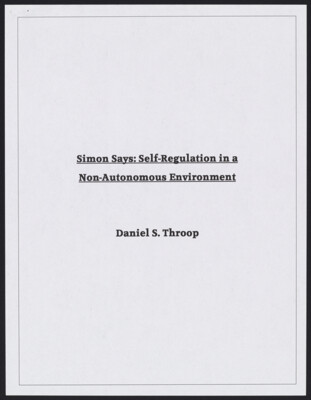 Simon Says: Self-Regulation in a Non-Autonomous Environment Daniel S. Throop Carl Jung once stated that “Only that which is truly ourselves has the power to heal” (Richo 261). It is through such a Jungian-lens of...