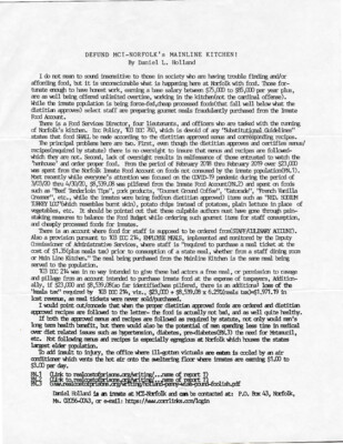 Defund MCI - Norfolk's Mainline Kitchen! By Daniel L. Holland I do not mean to sound insensitive to those in society who have trouble finding and/or affording food, but it is unconscionable what is happening...