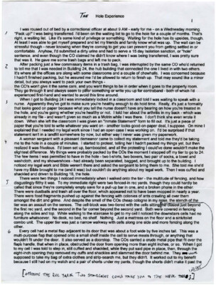I was roused out of bed by a correctional officer at about 9 AM - early for me - on a Wednesday morning. "Pack up!" I was being transferred. I'd been...