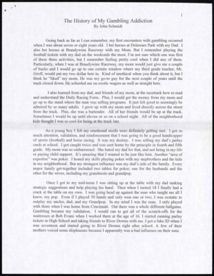 The History of My Gambling Addiction By John Schmidt Going back as far as I can remember, my first encounters with gambling occurred when I was about seven or eight years old. I bet horses...